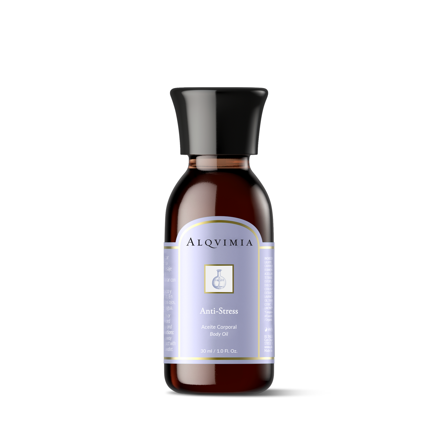 - Aceite Corporal Anti-Stress 30ml: Su estimulante fragancia proporciona una sensación inmediata de bienestar general. Aplicado en masaje, facilita la relajación de tensiones. Hidrata y regenera, dejando la piel tersa y suave.