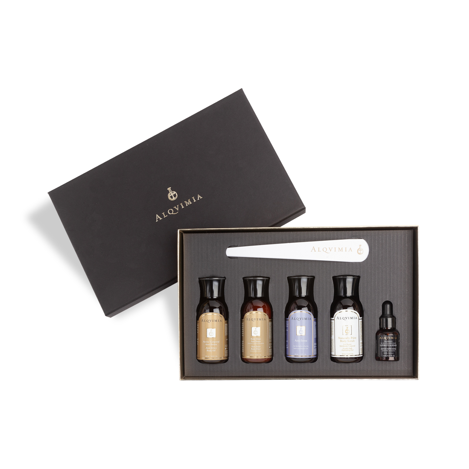 Caja Experiencia Calm para una Supreme Beauty&Spa Experience: Permite descubrir y gozar del ritual Anti-Stress de ALQVIMIA junto a un estimulante preparado de aceites esenciales para una experiencia única. Aporta la unión de los productos necesarios para el Home Spa Treatment para relajarse y encontrar un momento de paz.